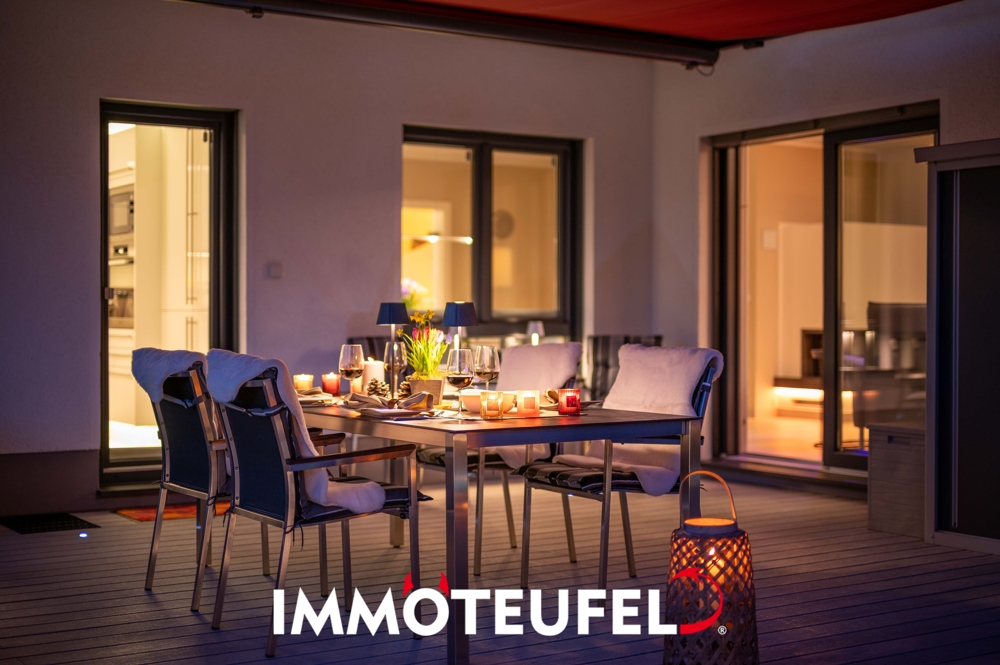– Ca. 80 m² große, hochwertig ausgestattete Terrasse mit elektrischen Markisen, integrierter Beleuchtung sowie zahlreichen Stromanschlüssen – ideal für stilvolle Sommerabende und gesellige Stunden