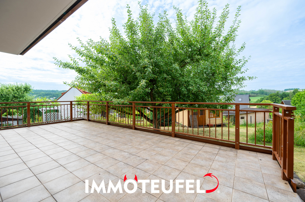 + Sonnige Terrasse und Balkon mit Ausblick ins Grüne