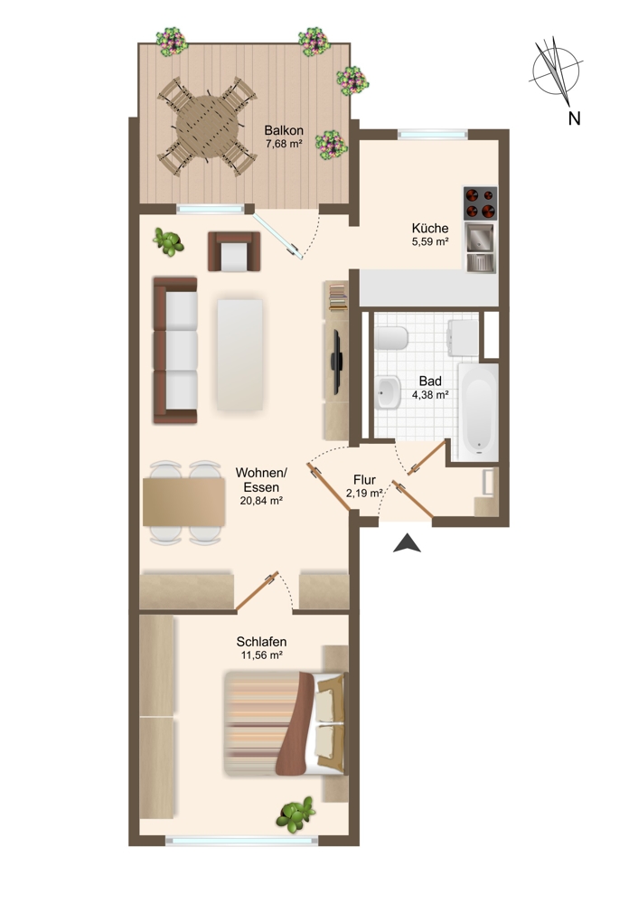 Die Wohnung ist aktuell noch vermietet und ist ab Mai 2026 verfügbar. Die Einbauküche wurde im Mietpreis bereits berücksichtigt.