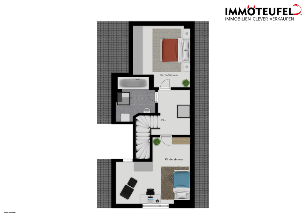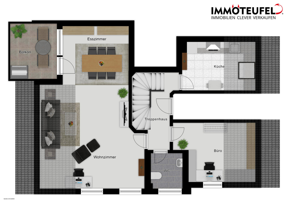 Die Wohnung überzeugt durch eine durchdachte Aufteilung über zwei Ebenen. Im Dachgeschoss befinden sich der helle Wohnbereich mit Zugang zum Balkon, eine separate Küche, ein Arbeitszimmer sowie ein Gäste-WC. Im Spitzboden sind das Schlafzimmer, ein Kinderzimmer sowie das Badezimmer mit Wanne untergebracht. Außenjalousien sorgen für zusätzlichen Komfort. Zur Wohnung gehört ein eigener Außenstellplatz, der den Wohnwert weiter erhöht. Die kleine Eigentümergemeinschaft von nur vier Wohneinheiten gewährleistet ein angenehmes Miteinander und eine überschaubare Verwaltung.