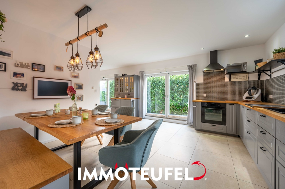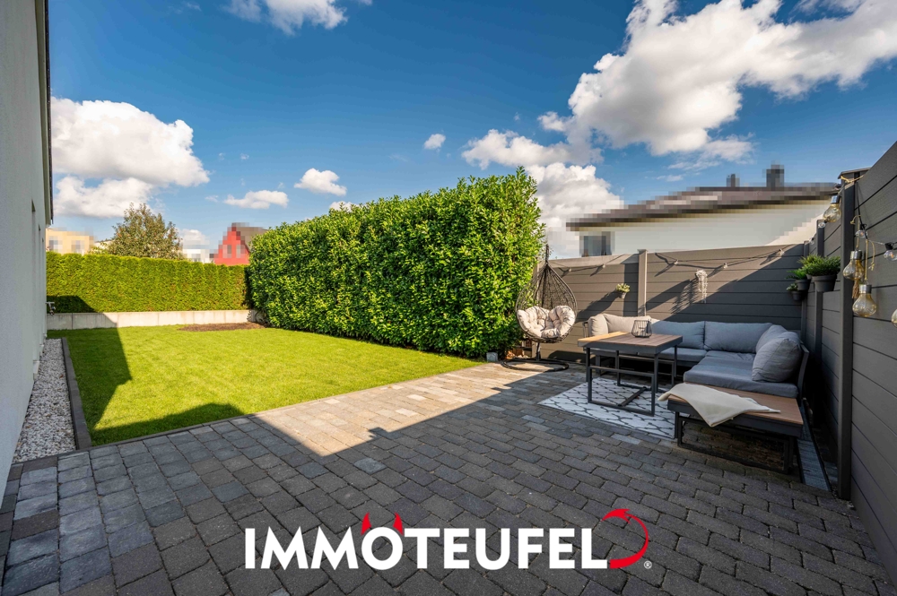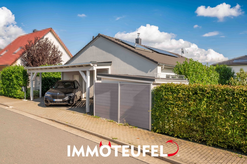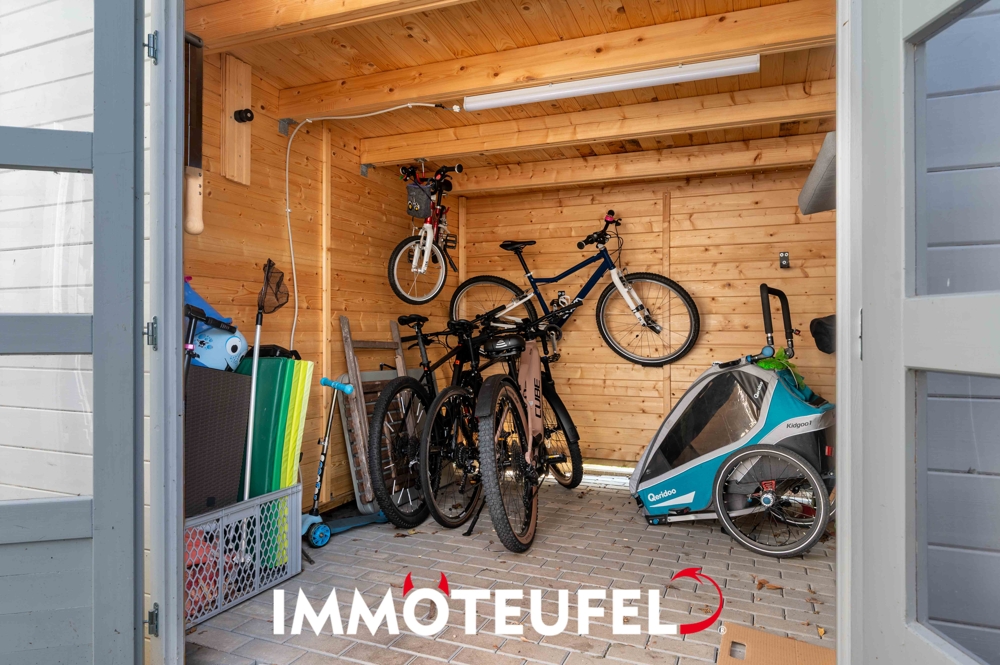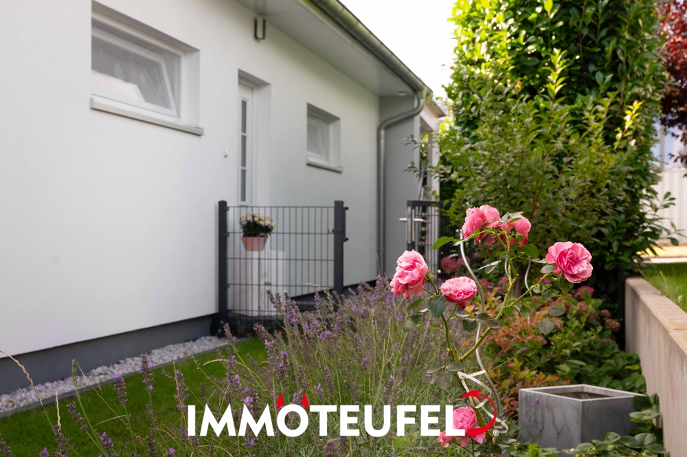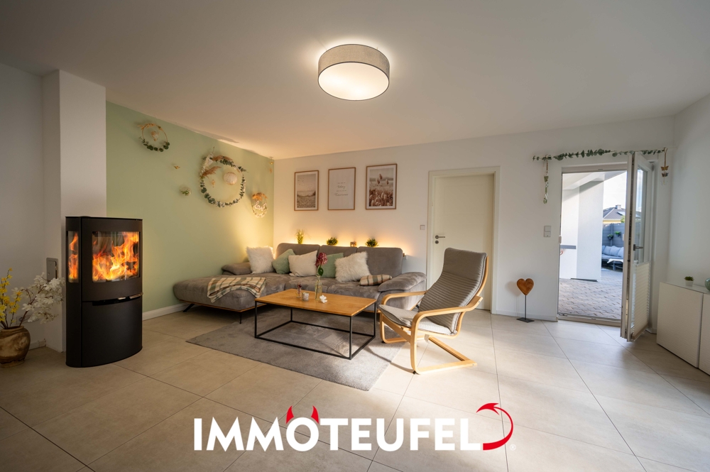 Besonderen Wohnkomfort schaffen die hochwertige Ausstattung und durchdachte Details: Außenjalousien an allen bodentiefen Fenstern sorgen für Beschattung und Sicherheit, die Gaszentralheizung mit Solarthermie wird durch einen Kamin im Wohnbereich unterstützt und eine Photovoltaikanlage auf dem Dach ermöglicht die Eigenstromversorgung. Zusätzlich steht ein großzügiger Dachboden als Stauraum zur Verfügung.