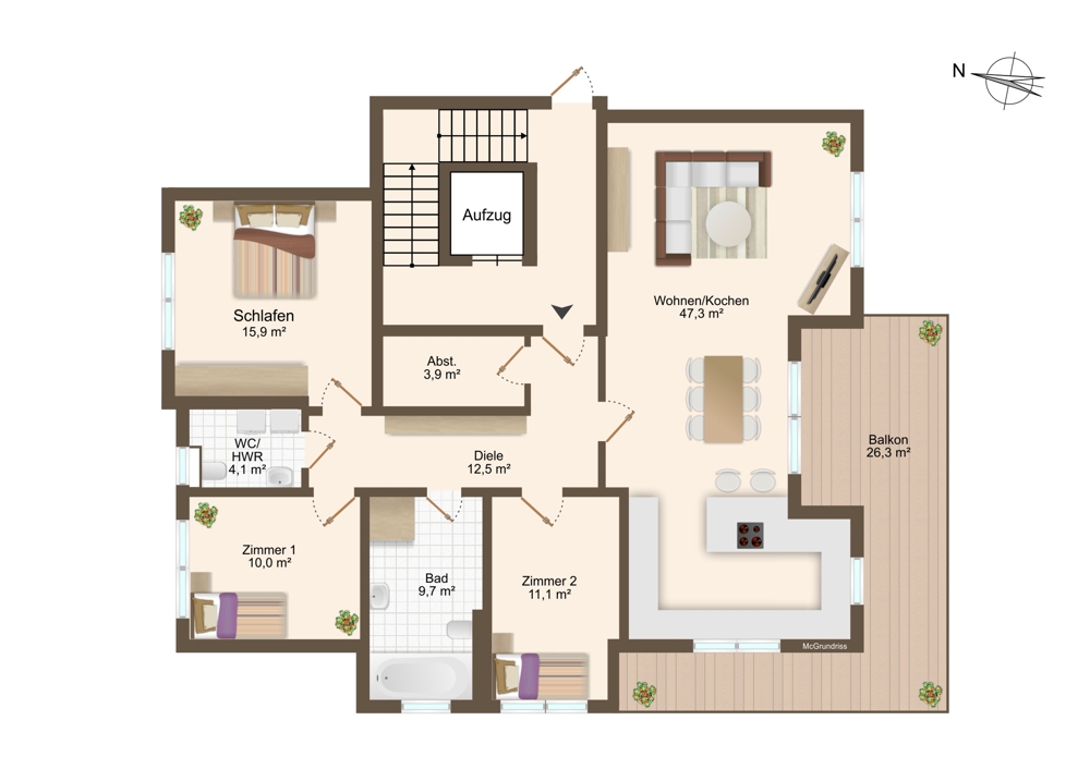 – großer L-förmiger Balkon mit ca. 26 m²