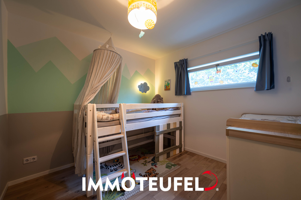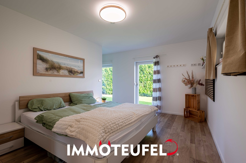 Dieser Bungalow vereint zeitgemäßes Wohnen, Komfort und Energieeffizienz in idealer Weise. Mit insgesamt vier Zimmern bietet er ausreichend Platz für Paare oder Familien. Herzstück ist das große, lichtdurchflutete Wohnzimmer mit Kaminofen und Zugang zur Terrasse, die nahtlos den Wohnraum ins Freie erweitert.