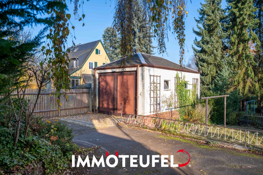 Auf dem gepflegten Grundstück befindet sich zudem eine große Garage mit Platz für Fahrzeuge, Fahrräder oder Gartengeräte.